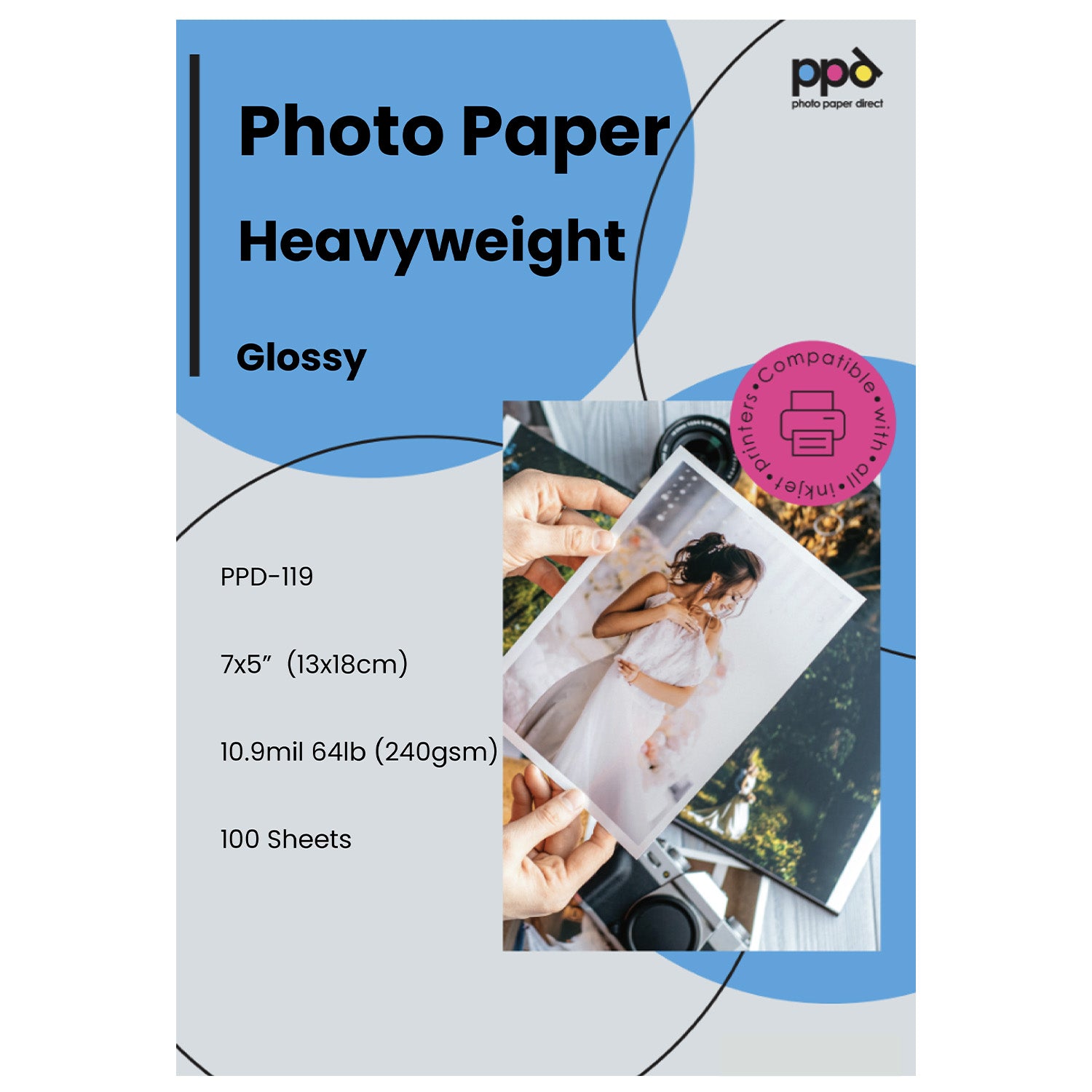Inkjet Heavyweight Photo Paper Glossy 64lb. 240gsm 10.9mil 5 x 7" PPD-119