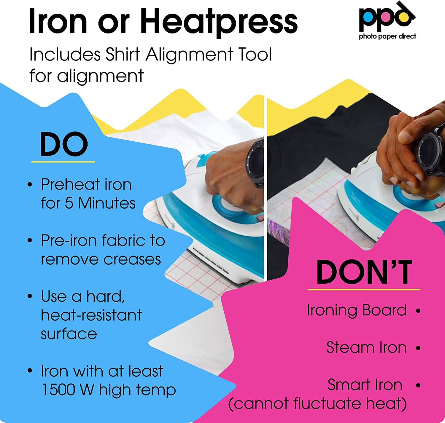 Our Inkjet Transfer Paper for light/dark fabrics applies with a standard iron or a professional heat press. We include full instructions inside each packet of transfer paper. Apply your own photos, artwork, design, T-shirt message to a wide range of light or dark fabrics with the appropriate paper. Our transfer paper is compatible with Cricut and other cutting machines.